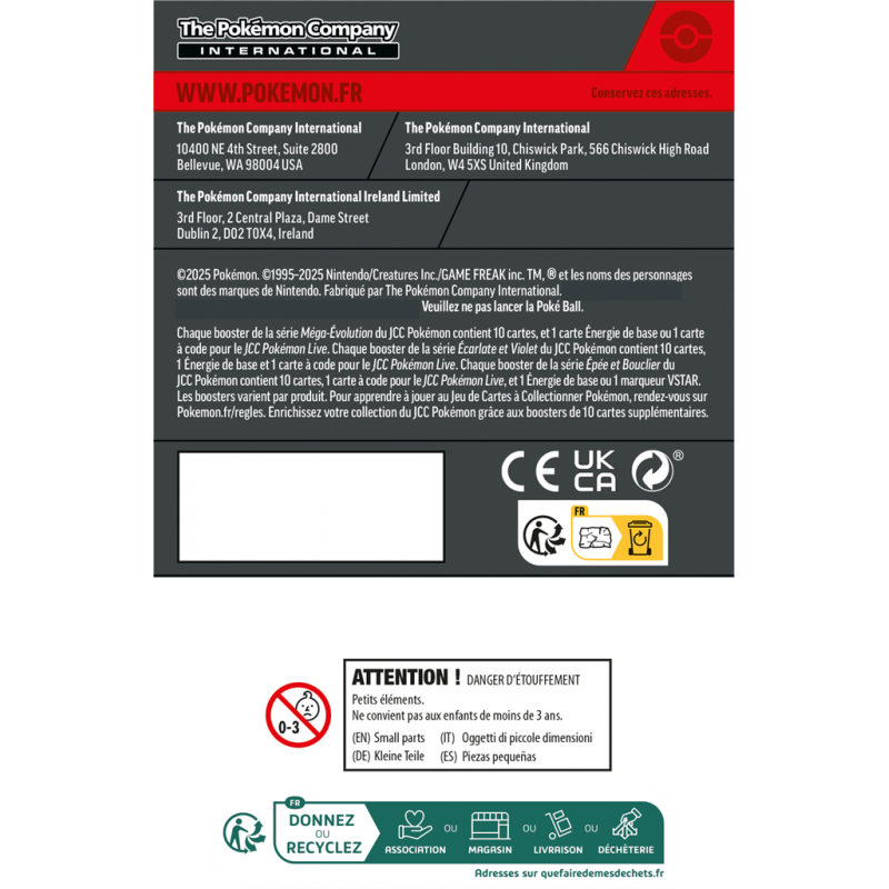 1 Pokéball comprenant 3 boosters et 2 pages d'autocollants. Coloris Aléatoire selon disponibilités