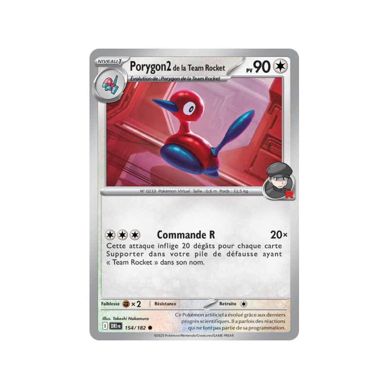Carte Commune du Pokémon Porygon2 de la Team Rocket Pv 90 numéro 154/182 issue de l’extension Écarlate et Violet – Rivalités Destinées