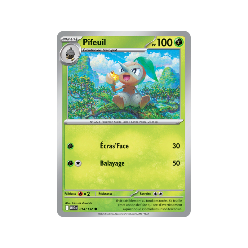 Carte Commune du Pokémon Pifeuil Pv 100 numéro 14/132 de la nouvelle extension Méga-Évolution