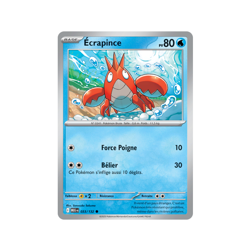 Carte Commune du Pokémon Écrapince Pv 80 numéro 33/132 de la nouvelle extension Méga-Évolution