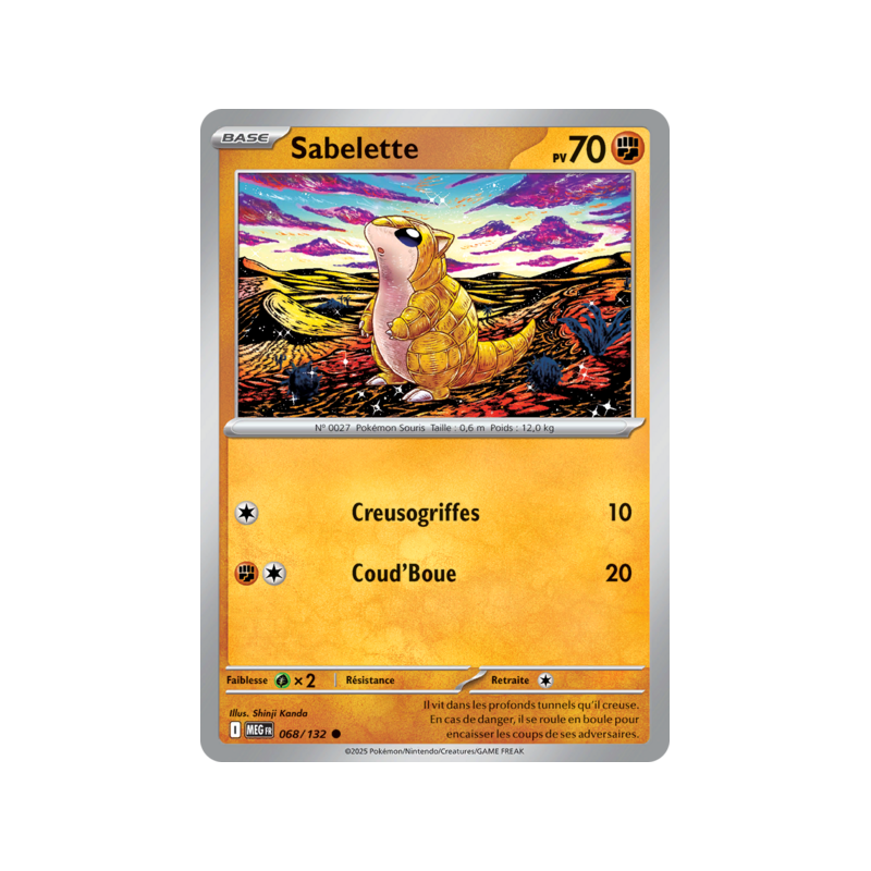 Carte Commune du Pokémon Sabelette Pv 70 numéro 68/132 de la nouvelle extension Méga-Évolution