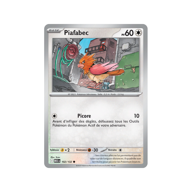 Carte Commune Reverse du Pokémon Piafabec Pv 60 numéro 102/132 de la nouvelle extension Méga-Évolution
