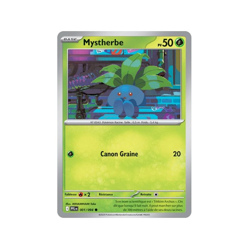 Carte Commune du Pokémon Mystherbe Pv 50 numéro 001/094 de la nouvelle extension Méga-Évolution Flammes Fantasmagoriques