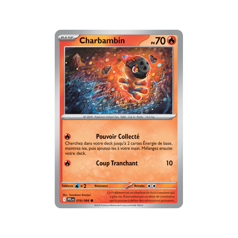 Carte Commune Reverse du Pokémon Charbambin Pv 70 numéro 019/094 de la nouvelle extension Méga-Évolution Flammes Fantasmagoriques