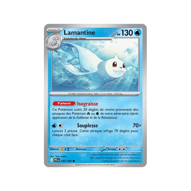 Carte Commune Reverse du Pokémon Lamantine Pv 130 numéro 022/094 de la nouvelle extension Méga-Évolution Flammes Fantasmagoriques
