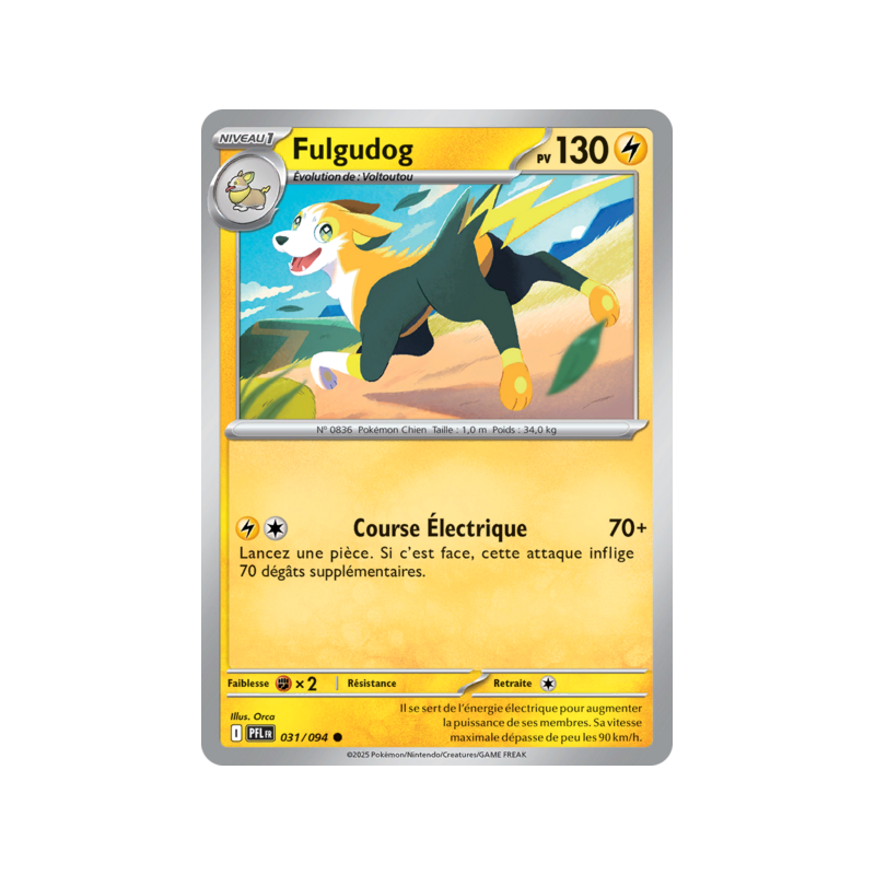 Carte Commune du Pokémon Fulgudog Pv 130 numéro 31/094 de la nouvelle extension Méga-Évolution Flammes Fantasmagoriques