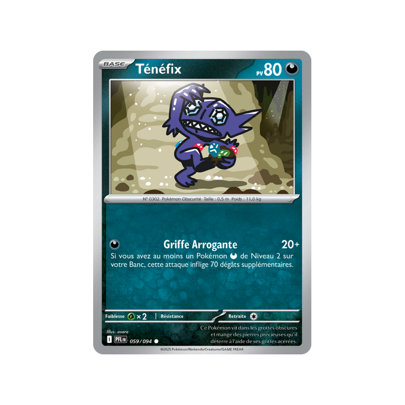Carte Commune du Pokémon Ténéfix Pv 80 numéro 59/094 de la nouvelle extension Méga-Évolution Flammes Fantasmagoriques