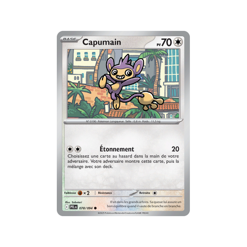 Carte Commune Reverse du Pokémon Capumain Pv 70 numéro 78/094 de la nouvelle extension Méga-Évolution Flammes Fantasmagoriques