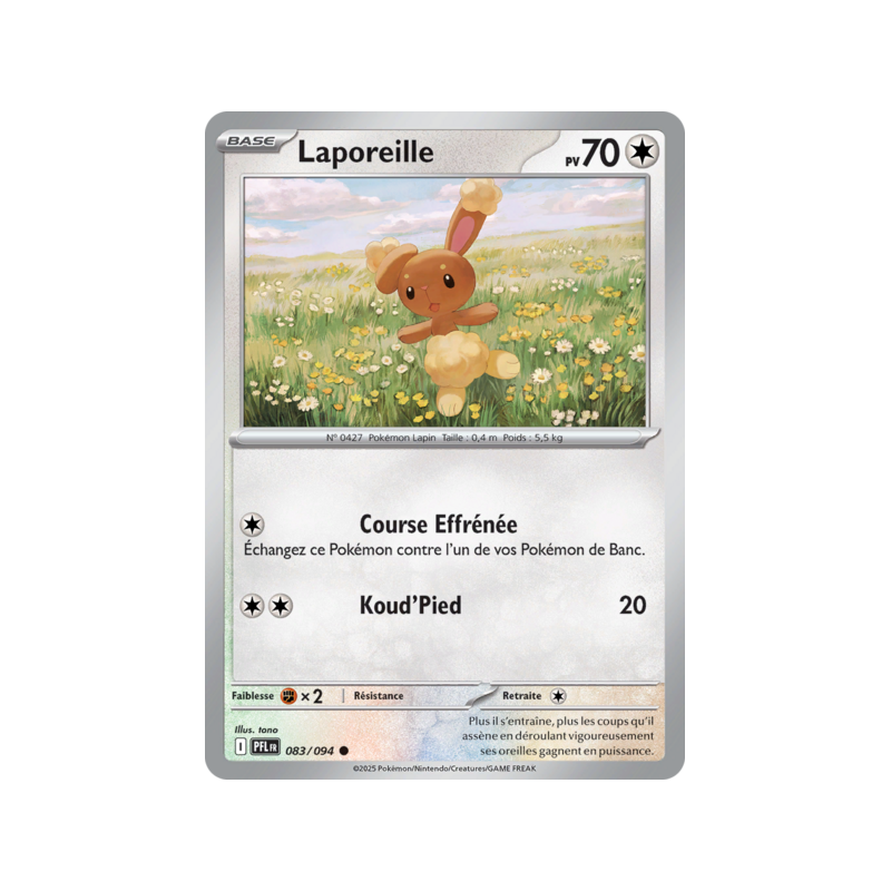 Carte Commune Reverse du Pokémon Laporeille Pv 70 numéro 83/094 de la nouvelle extension Méga-Évolution Flammes Fantasmagoriques