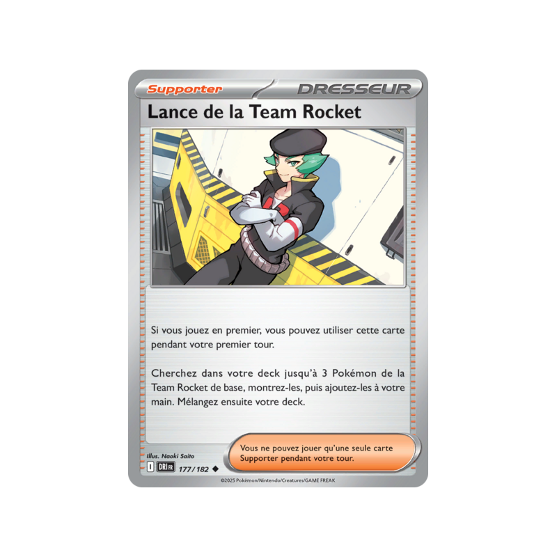 Carte Peu Commune du Dresseur Lance de la Team Rocket numéro 177/182 issue de l’extension Écarlate et Violet – Rivalités Destinées