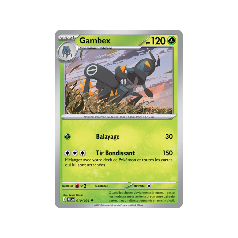 Carte Peu Commune du Pokémon Gambex Pv 120 numéro 010/094 de la nouvelle extension Méga-Évolution Flammes Fantasmagoriques