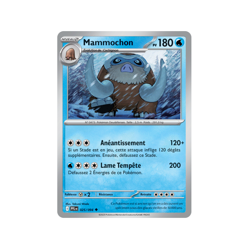 Carte Peu Commune Reverse du Pokémon Mammochon Pv 180 numéro 025/094 de la nouvelle extension Méga-Évolution Flammes Fantasmagoriques