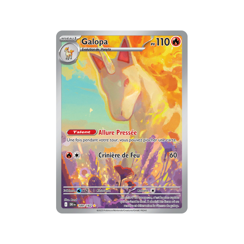 Carte Illustration Rare du Pokémon Galopa Pv 110 numéro 189/182 de la nouvelle extension Écarlate et Violet Rivalités Destinées