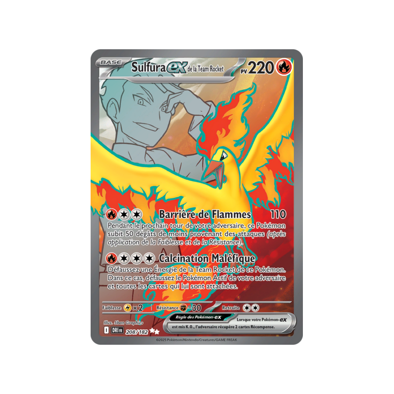 Carte Ultra Rare du Pokémon Sulfura-ex de la Team Rocket Pv 220 numéro 208/182 de la nouvelle extension Écarlate et Violet Rivalités Destinées