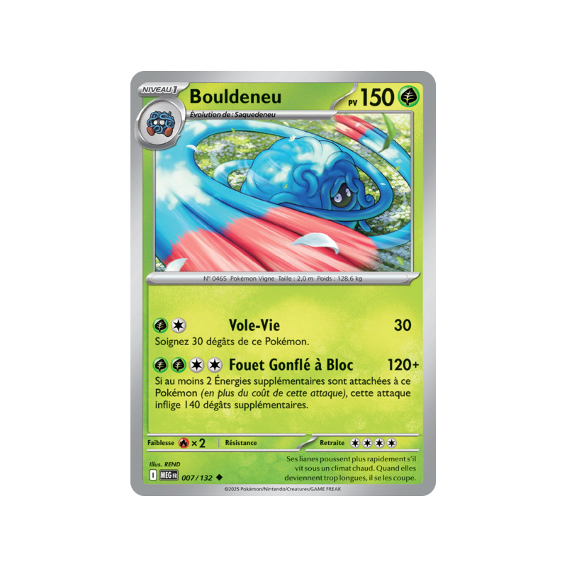 Carte Peu Commune du Pokémon Bouldeneu Pv 150 numéro 7/132 de la nouvelle extension Méga-Évolution