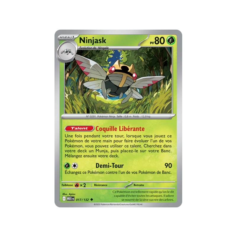 Ninjask Pv 80 017/132 - Carte Peu Commune Reverse - Méga-Évolution