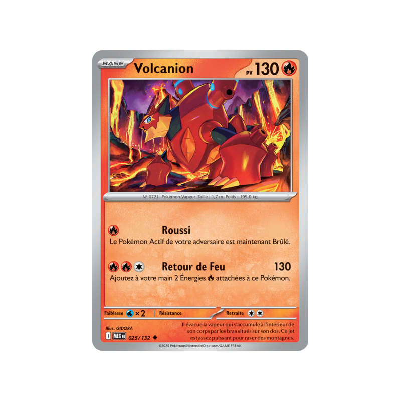 Carte Peu Commune Reverse du Pokémon Volcanion Pv 130 numéro 25/132 de la nouvelle extension Méga-Évolution