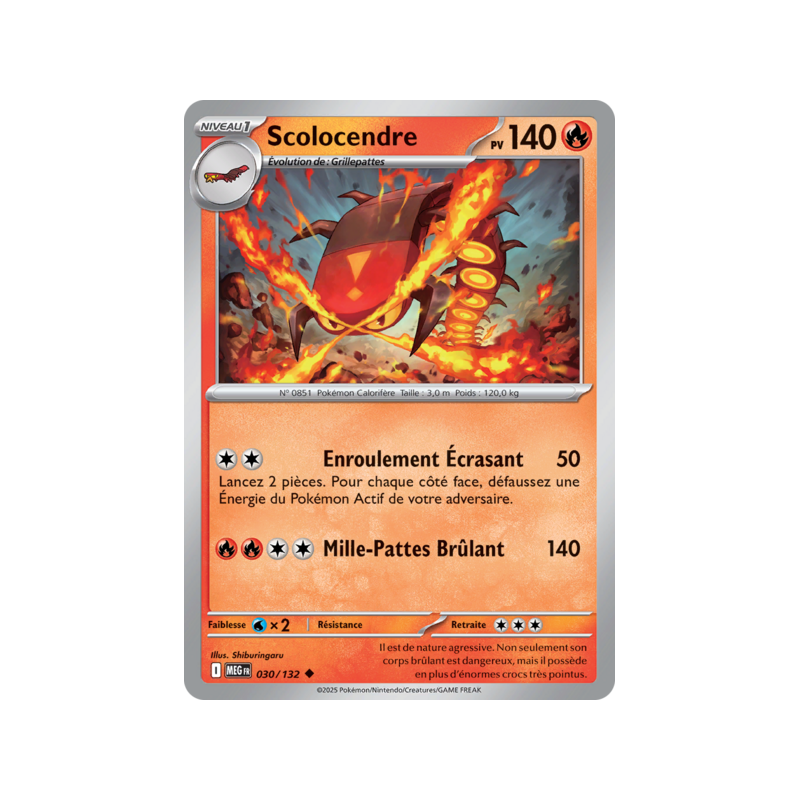 Carte Peu Commune du Pokémon Scolocendre Pv 140 numéro 30/132 de la nouvelle extension Méga-Évolution