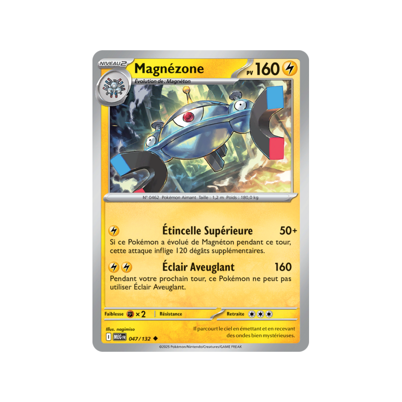 Carte Peu Commune Reverse du Pokémon Magnézone Pv 160 numéro 47/132 de la nouvelle extension Méga-Évolution