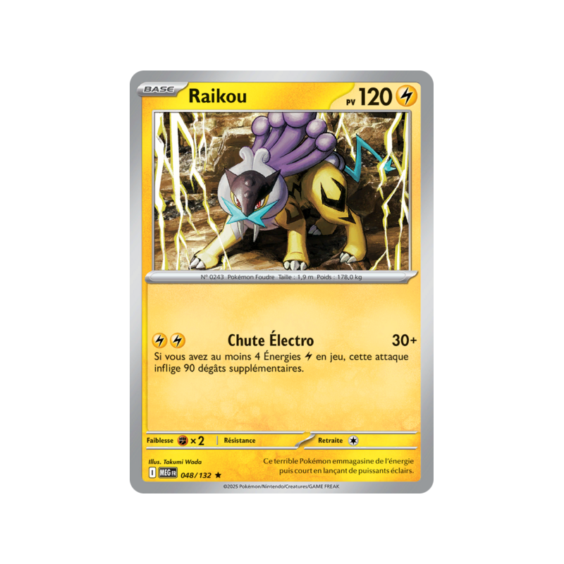 Carte Rare Holographique du Pokémon Raikou Pv 120 numéro 48/132 de la nouvelle extension Méga-Évolution