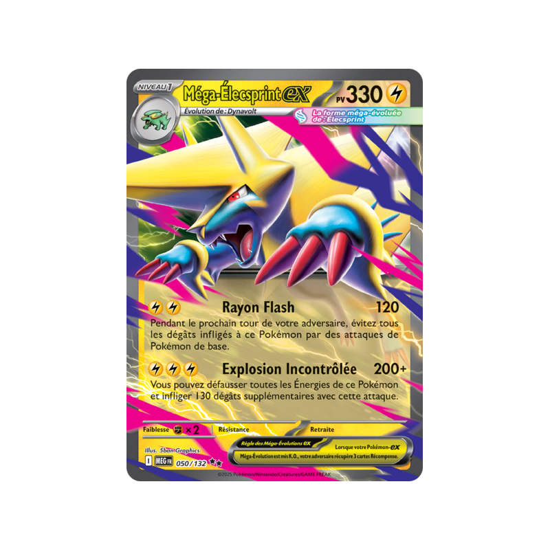 Carte Double Rare du Pokémon Méga-Élecsprint-ex Pv 330 numéro 50/132 de la nouvelle extension Méga-Évolution
