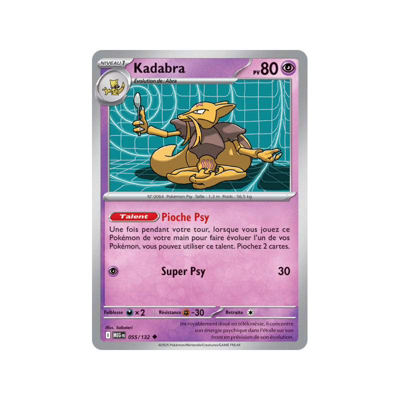 Kadabra Pv 80 55/132 - Carte Peu Commune - Méga-Évolution