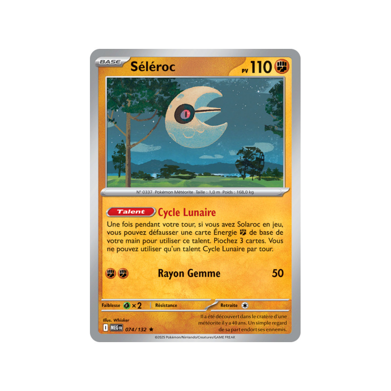 Carte Rare Holographique du Pokémon Séléroc Pv 110 Numéro 74/132 de la nouvelle extension Méga-Évolution