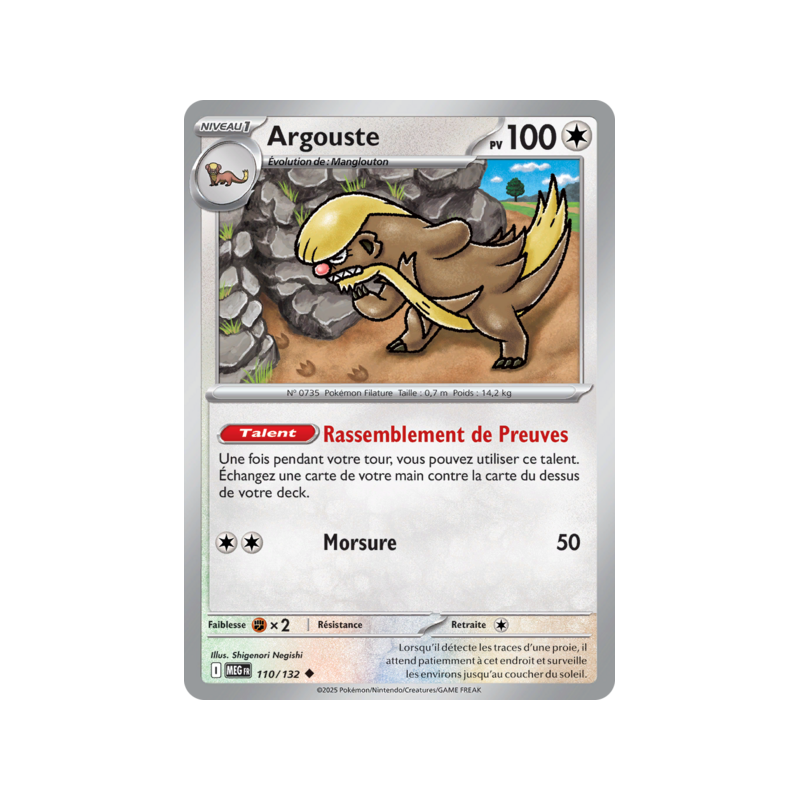 Carte Peu Commune du Pokémon Argouste Pv 100 numéro 110/132 de la nouvelle extension Méga-Évolution