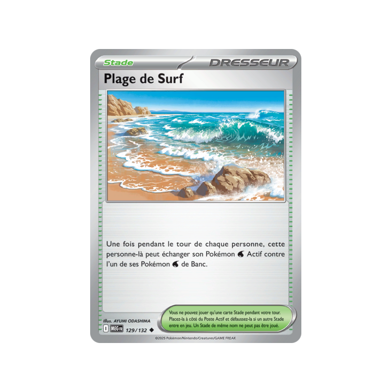 Carte Peu Commune Reverse du Stade Plage de Surf numéro 129/132 de la nouvelle extension Méga-Évolution