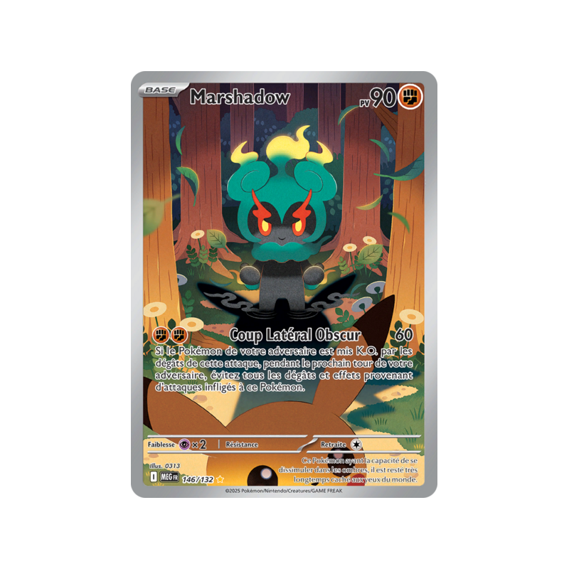Carte Secrète Illustration Rare du Pokémon Marshadow Pv 90 numéro 146/132 de la nouvelle extension Méga-Évolution