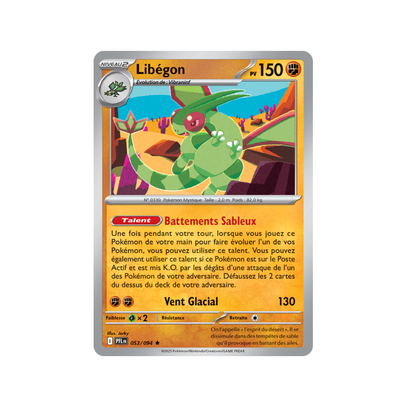 Carte Rare Holographique du Pokémon Libégon Pv 150 numéro 053/094 de la nouvelle extension Méga-Évolution Flammes Fantasmagoriques