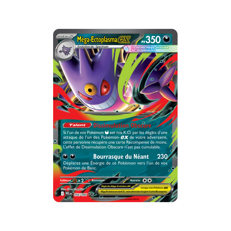 Carte Double Rare du Pokémon Méga-Ectoplasma-ex Pv 350 numéro 56/094 de la nouvelle extension Méga-Évolution Flammes Fantasmagoriques