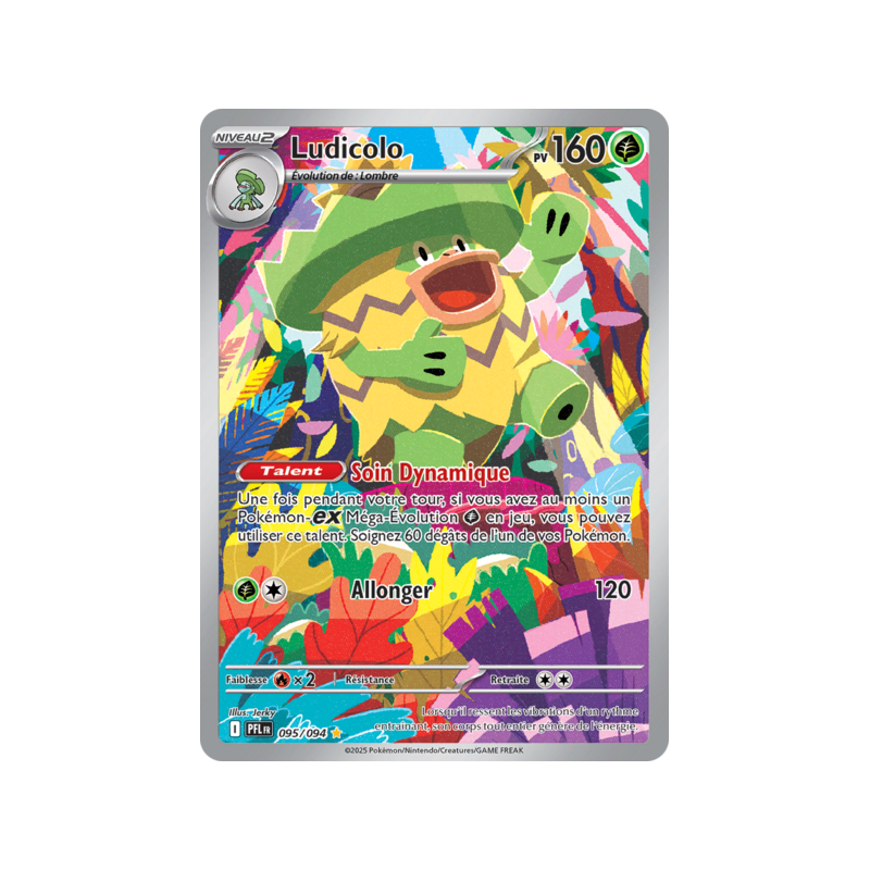 Carte Illustration rare Secrète du Pokémon Ludicolo Pv 160 numéro 95/094 de la nouvelle extension Méga-Évolution Flammes Fantasmagoriques