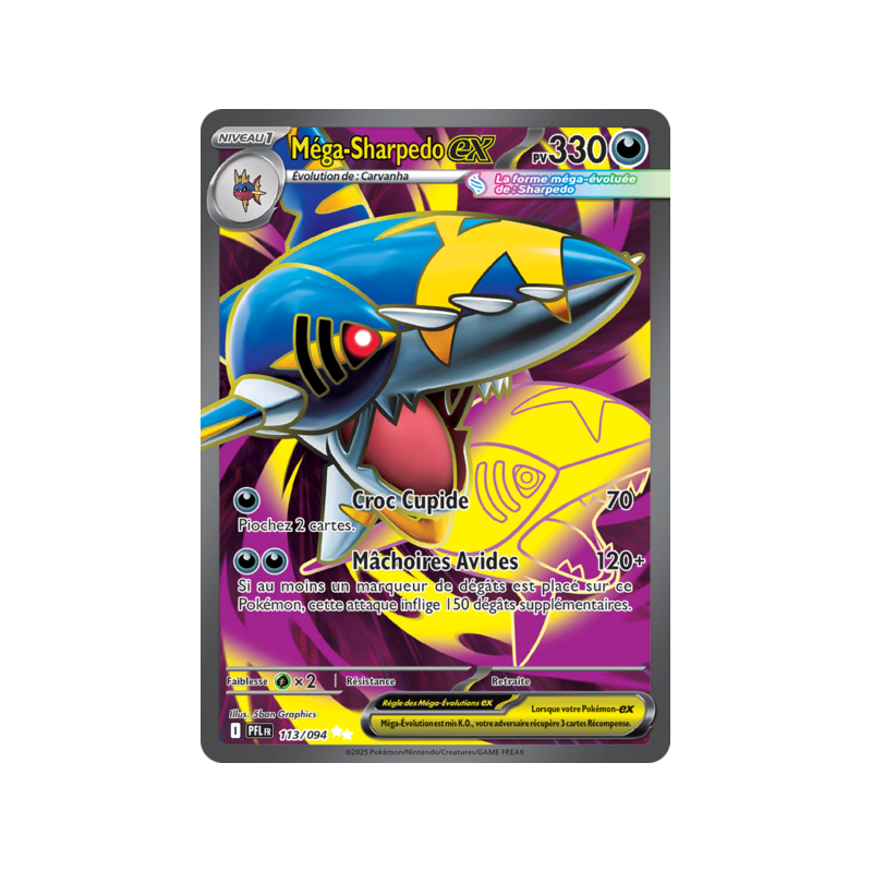 Méga-Sharpedo-ex Pv 330 113/094 - Carte Ultra Rare Secrète - Méga-Évolution Flammes Fantasmagoriques