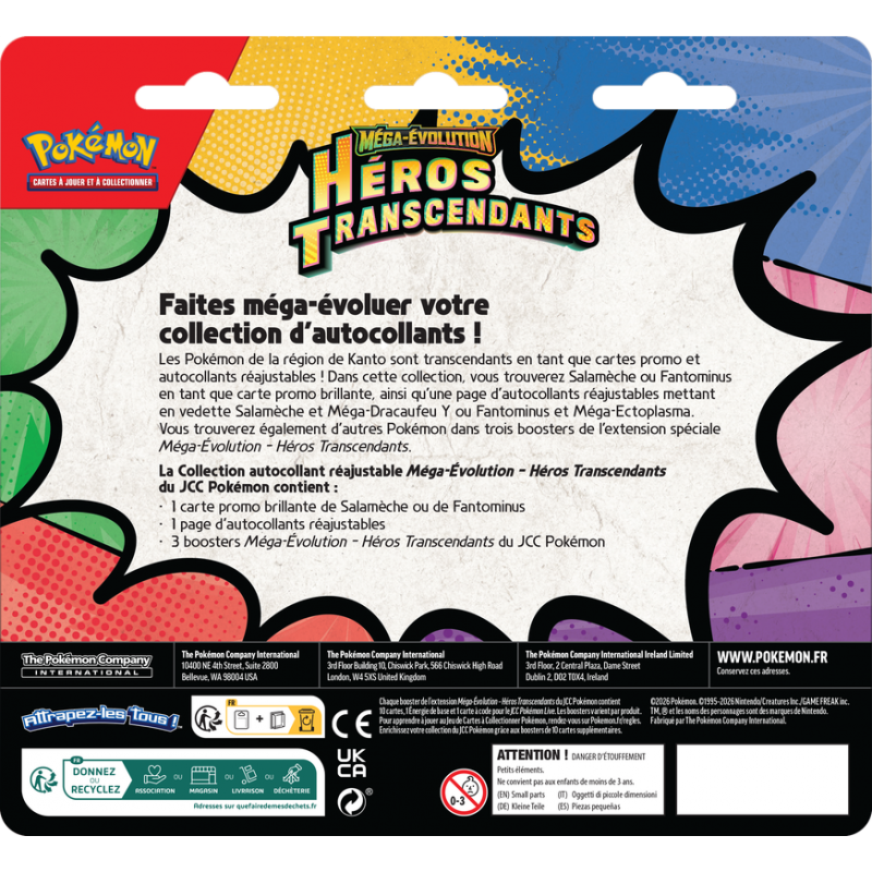 La Collection autocollant réajustable Méga-Évolution – Héros Transcendants du JCC Pokémon contient :