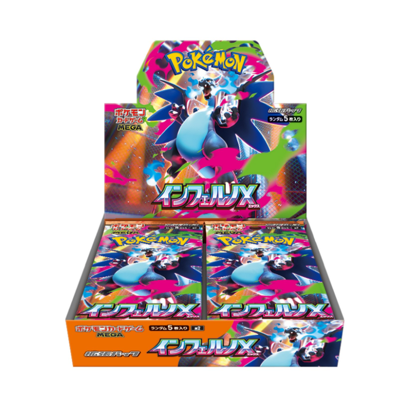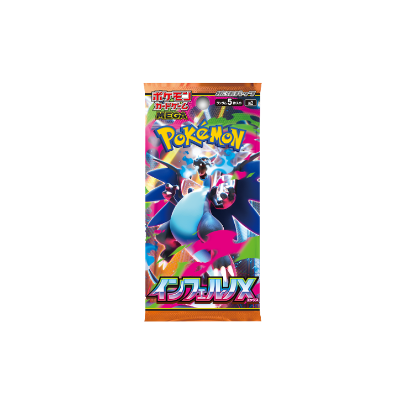 Nouveauté ! 1 Booster Pokémon M2 Inferno X en JAPONAIS : 5 cartes, mettant en avant les Mega-évolutions et Mega-Dracaufeu X
